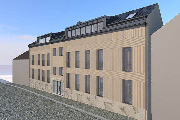 Nová bytovka na vizualizaci. Nabídne tři byty velikosti 3+kk a tři menší 2+kk. Primárně budou určené zaměstnancům pivovaru. Pokud nějaký byt zůstane volný, nabídne ho majitel do nabídky na volný trh.