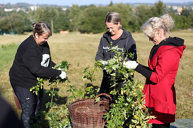 Česání chmele na nejvýše položené chmelnici v České republice. Nachází se v Humpolci v nadmořské výšce 560 metrů nad mořem. Pivovar Bernard ze zdejšího chmele uvaří speciální jedenáctku. (16. září 2025)