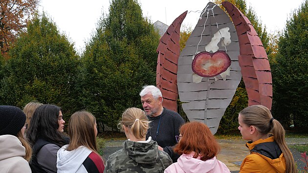 Sedmimetrové dílo, které zájemcům nabízí audiovizuální zážitek, přibylo do parku za bystřickou starou radnicí. Dominuje mu velké srdce vyrobené z pryskyřice.