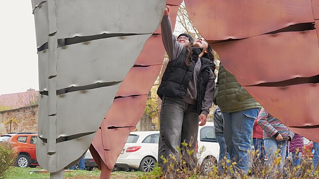 Sedmimetrové dílo, které zájemcům nabízí audiovizuální zážitek, přibylo do parku za bystřickou starou radnicí. Dominuje mu velké srdce vyrobené z pryskyřice.
