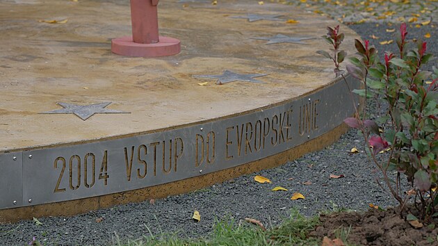 Obří plastika se zabývá i vztahem České republiky, Evropy a Evropské unie.