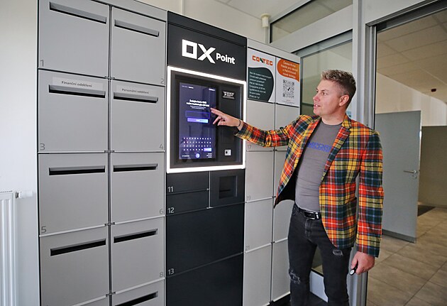 Šéf pelhřimovského provozu Aleš Valenta ukazuje jeden z chytrých boxů před finalizací.