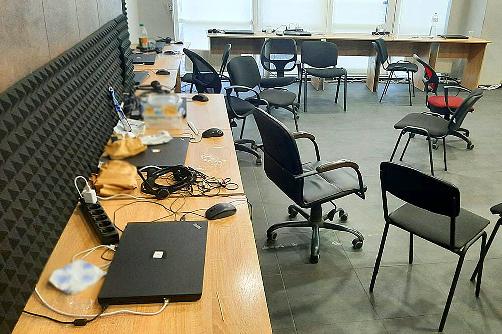 Snímky ze zadržení pachatelů na Ukrajině a shromažďování důkazů.