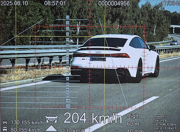Audi RS7 s německou registrační značkou projelo kolem policejního radaru v neděli dopoledne.