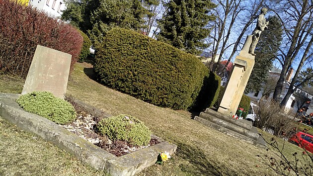 Socha rudoarmějce je součástí pomníku padlým z první i druhé světové války. Patří k němu i kamenný blok s reliéfy a dva sousední hroby s nápisy v azbuce.