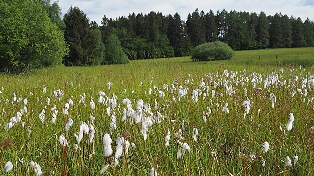 Šarátky, louky mezi Pohledcem a Studnicemi, jsou mimo jiné místem výskytu suchopýru pochvatého (na snímku).