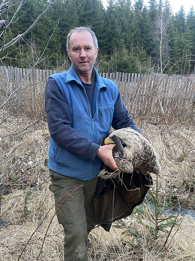 Postřeleného orla mořského našli v Dobré vodě u Pacova ochránci přírody.