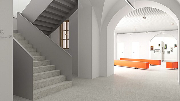 Pohled na schodiště a respirium, kde by mělo být návštěvnické centrum.