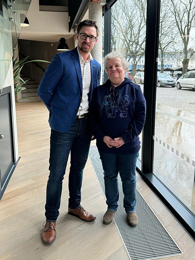 Bývalý ředitel druhé největší školy na Vysočině Lukáš Venkrbec s Danou Drábovou.