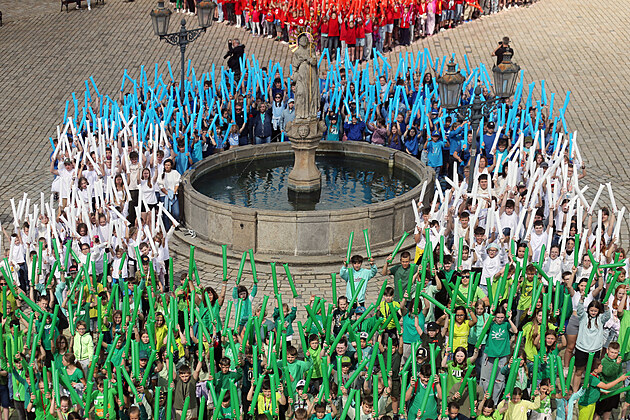 Rekordních 1377 žáků pelhřimovských základních škol vytvořilo na tamním náměstí obří živý obraz. Stalo se tak u příležitosti oslav kulatého výročí od první zmínky o městu. K barevnému sladění přispělo vhodné oblečení školáků i nafouklé fandící tyče.