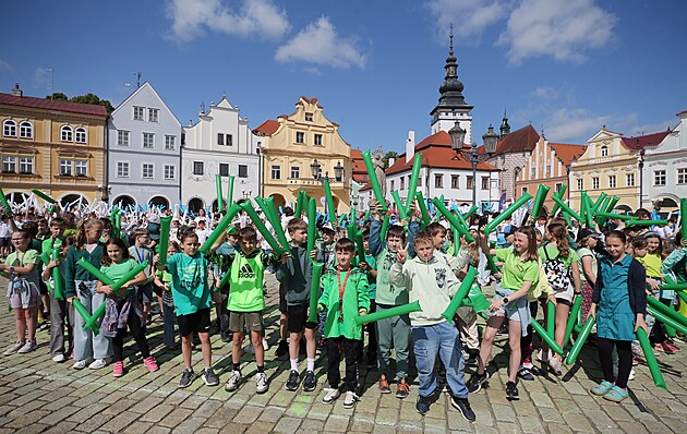 Rekordních 1377 žáků pelhřimovských základních škol vytvořilo na tamním náměstí obří živý obraz. Stalo se tak u příležitosti oslav kulatého výročí od první zmínky o městu. K barevnému sladění přispělo vhodné oblečení školáků i nafouklé fandící tyče.