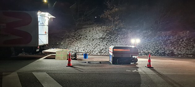 Opravy výtluků i za nižších teplot umožňuje silničářům nová mikrovlnná technologie. Práce probíhají na dvě směny i v nočních hodinách.