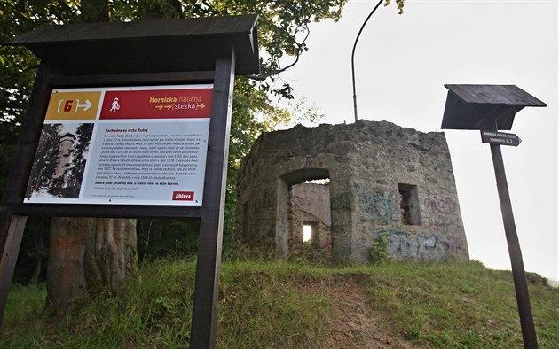 Druhá rozhledna na Šacberku vyhořela v roce 1940 a zbylo z ní jen kamenné torzo.