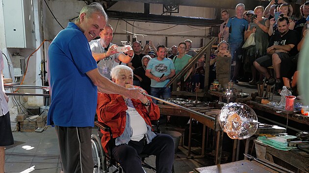 Protagonisté legendárního seriálu si mohli v Tasicích fouknout do sklářských píšťal. Někteří už zkušeně, jiní poprvé v životě. (na snímku Jiří Krampol)