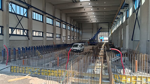 Uvnitř bude vedle rozvodů vody, vzduchu a elektroinstalací technologie na zvedání a opravu železničních souprav.