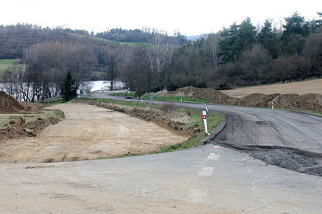 Nebezpečná zatáčka s odbočkou u Dobré Vody poblíž Mrákotína na frekventované silnici I/ 23 změní svůj vzhled. Práce tu běží už od dubna.