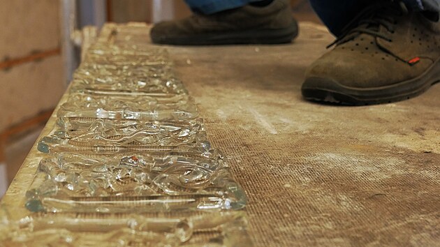 Rozebrání lustrů znamenalo pečlivou a opatrnou práci se stovkami skleněných destiček, upevněných k ramenům svítidla drátky.