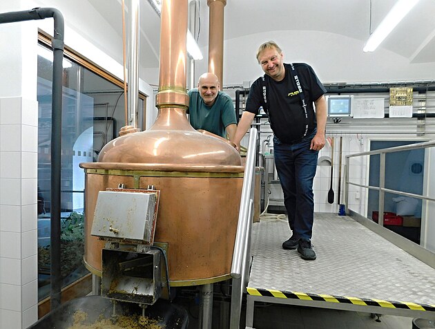 Dva ze tří společníků, zleva Jiří Mazal a Radek Padrtka, vaří pivo Štajgr.