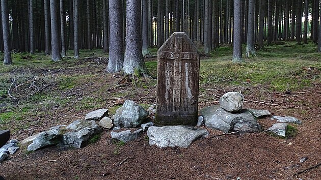 Mramorový smírčí Pytlácký kámen nedaleko Vojtěchova na Žďársku, když byl ještě na svém místě.