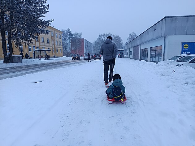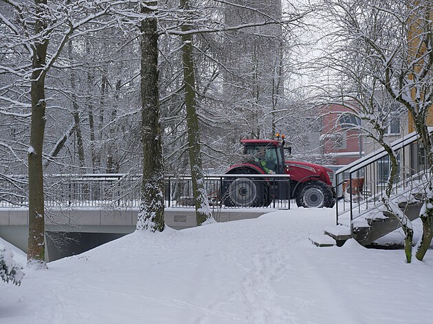 Sněhová nadílka ve Žďáře nad Sázavou. V noci na úterý napadlo přibližně 15 centimetrů sněhu. (17. února 2026)