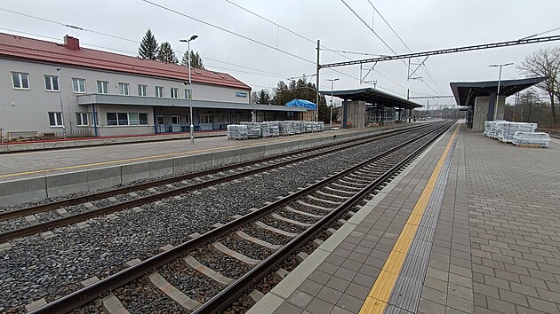 Na koncích nástupišť jsou stále narovnané palety s deskami. U kolejí i v podchodu pak ještě zcela chybí informační systém. Panely s časy odjezdů vlaků budou instalovány a zapojeny později. Naopak dokončena je obměna celého kolejového svršku i prodloužení odstavné koleje.