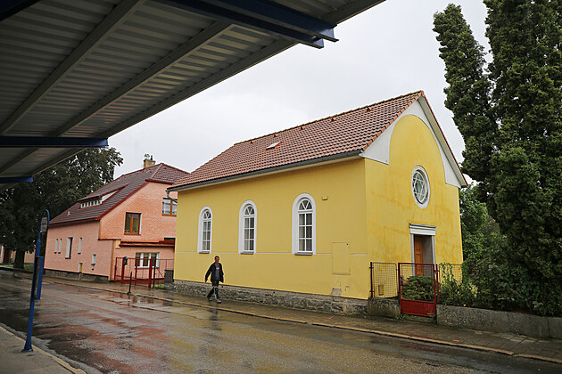 Průčelí jednoduché budovy doplňuje na západní straně původní židovská hvězda a na východní evangelický reliéf z roku 1974, kdy byla stavba rekonstruována.