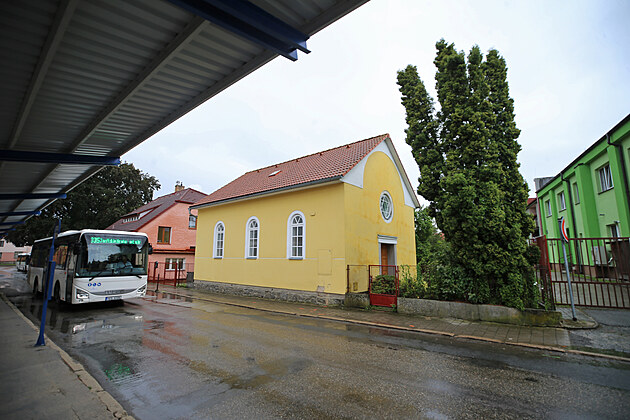 Průčelí jednoduché budovy doplňuje na západní straně původní židovská hvězda a na východní evangelický reliéf z roku 1974, kdy byla stavba rekonstruována.