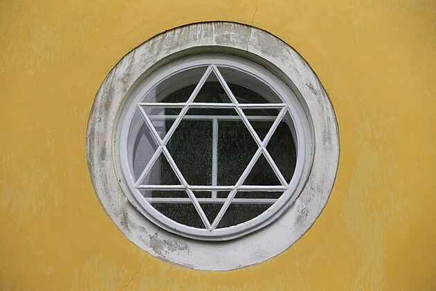Průčelí jednoduché budovy doplňuje na západní straně původní židovská hvězda a na východní evangelický reliéf z roku 1974, kdy byla stavba rekonstruována.