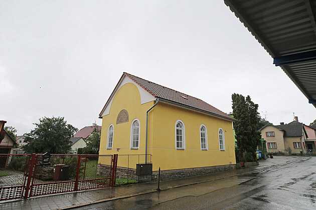 Průčelí jednoduché budovy doplňuje na západní straně původní židovská hvězda a na východní evangelický reliéf z roku 1974, kdy byla stavba rekonstruována.