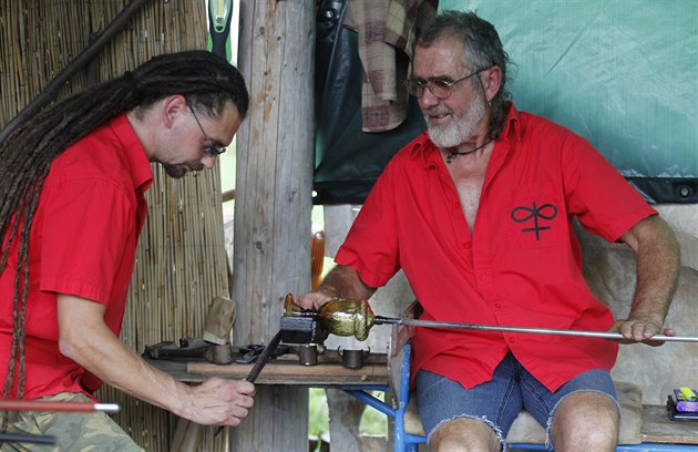 Dobronínský sklář František Novák (vpravo) se už čtvrtstoletí profesionálně zabývá výrobou replik středověkého skla. Vyrábí pro Skandinávii, tuzemská muzea či milovníky historie.