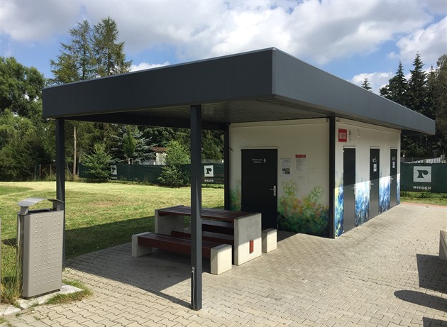 Nyní už jsou toalety opět otevřeny pro návštěvníky nonstop. Jejich součástí je také místnost s přebalovacím pultem. Vedle objektu je umístěno venkovní posezení - stůl a dvě lavičky.