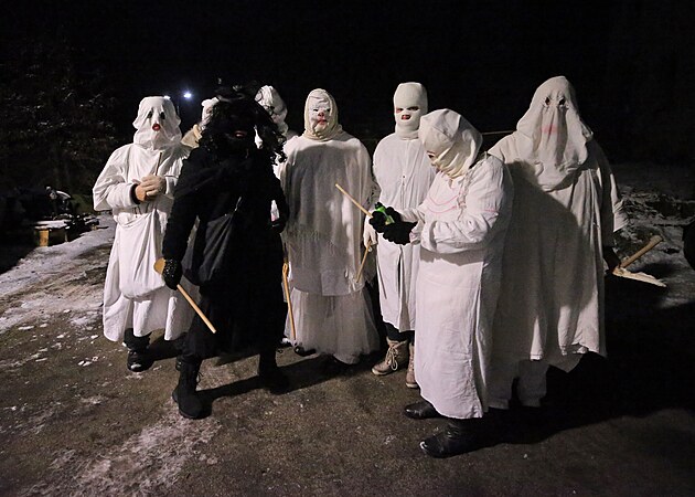 Černovem po setmění procházel strašidelný průvod. Ženy v bílých hábitech a s peroutkami a vařečkami v rukou prováděly tradiční obchůzku Lucií.