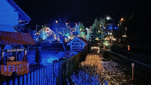 Osada Kladruby má díky vánoční výzdobě neopakovatelnou atmosféru. V době adventu tu září na sto tisíc světelných bodů.
