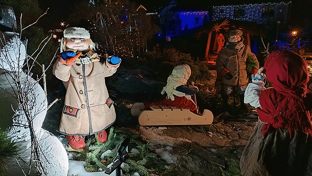 Na známý obraz Josefa Lady odkazuje jedna ze scének uprostřed Kladrub. Děti sáňkují a staví sněhuláka, kolem nich jde tatík s pilkou a stromkem.