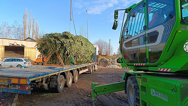Vánoční strom naložili pracovníci havlíčkobrodských Technických služeb ve čtvrtek ráno. Po transportu dlouhém přibližně 1100 kilometrů bude jehličnan dotvářet atmosféru v partnerském holandském městečku Brielle na břehu Severního moře.