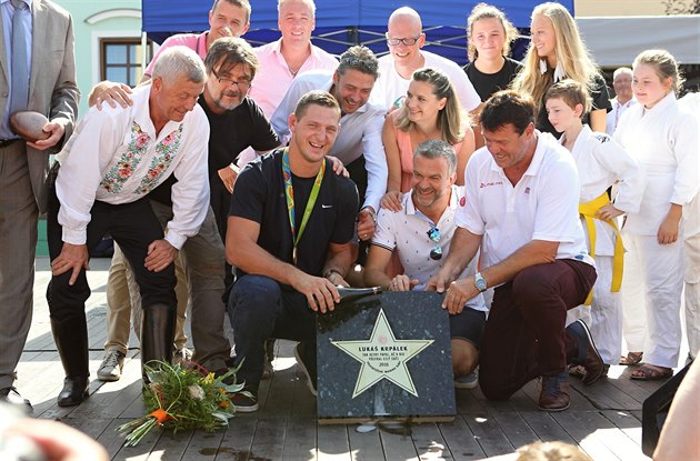 Judista a olympijský vítěz Lukáš Krpálek pokřtil ve Velké Bíteši svoji hvězdu na chodníku slávy (11. září 2016).