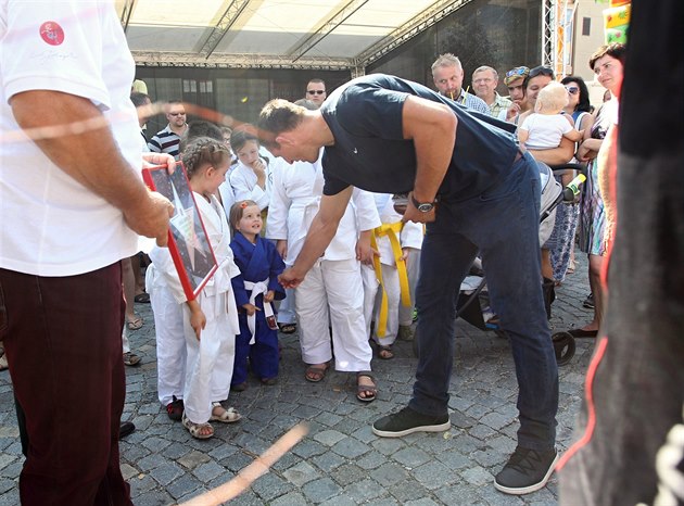 Judista a olympijský vítěz Lukáš Krpálek pokřtil ve Velké Bíteši svoji hvězdu na chodníku slávy (11. září 2016).