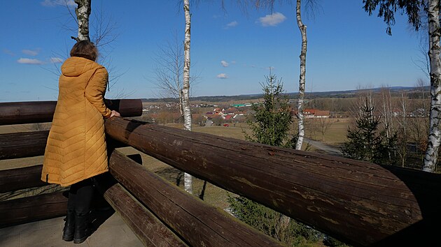 Vyhlídka z někdejšího vodojemu Na Kříbu u vesničky Kněževes nabízí pohled i na přírodní park Bohdalovsko.