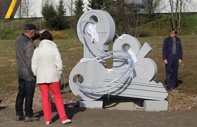Instalace památníku 17. listopadu na nábřeží v Jihlavě.