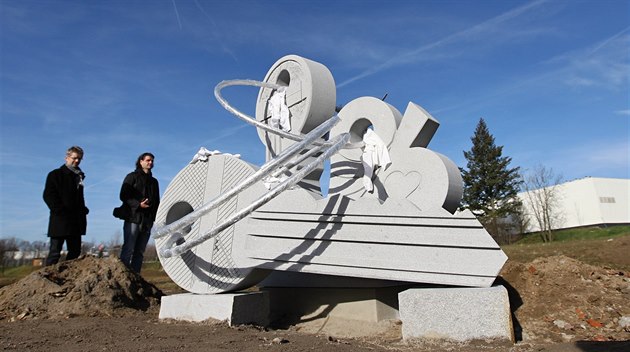 Instalace památníku 17. listopadu na nábřeží v Jihlavě.