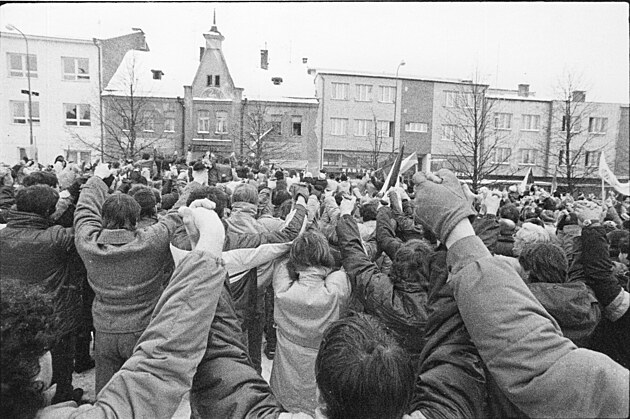 Období sametové revoluce přímo ve Žďáře nad Sázavou mapoval fotograf Jaroslav Šindelka. I jeho snímky budou k vidění na výstavě při nedělní žďárské akci Korzo Nádražní. Na snímku dění na náměstí.