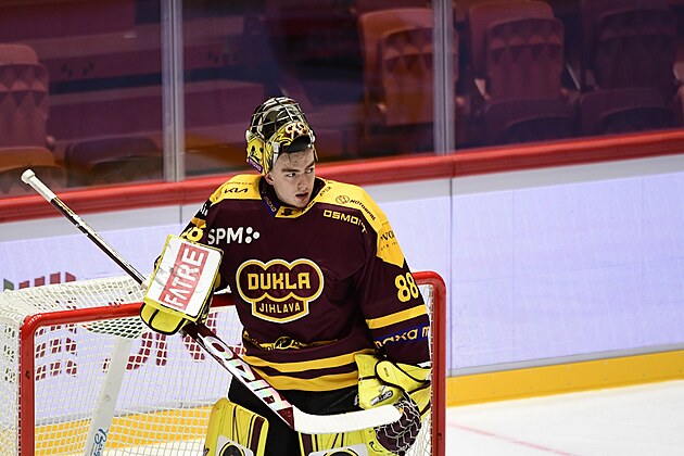 Střely zlínských Beranů se v brance domácí Dukly Jihlava snažil zastavovat Adam Beran.