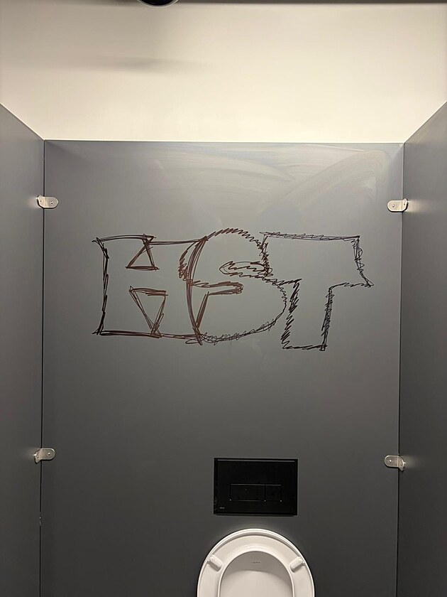 Po úterním hokejovém derby mezi prvoligovými hokejisty Dukly Jihlava a Horácké Slavie Třebíč zůstaly na záchodech Horácké arény vulgární nápisy.