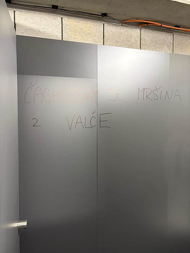 Po úterním hokejovém derby mezi prvoligovými hokejisty Dukly Jihlava a Horácké Slavie Třebíč zůstaly na záchodech Horácké arény vulgární nápisy.