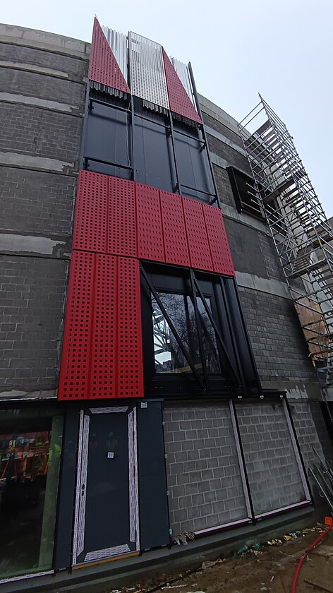 Na stavbě se však aktuálně neřeší pouze střecha. „Probíhají instalace. Hodně rozvodů, trubek, svařuje se, řeže se, natírá se, lakuje se, žlaby se stříkají, kabely se tahají...,“ říká manažer výstavby HMA David Beke.