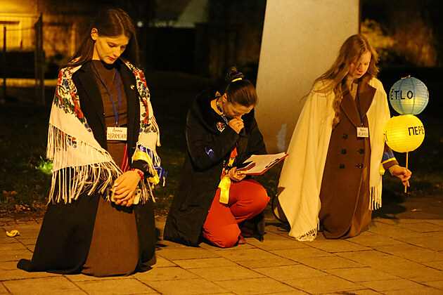 V průvodu, který v úterý večer v Jihlavě připomněl 1000 dnů od ruské agrese na Ukrajině, šly převážně ukrajinské ženy s dětmi a také několik Čechů.