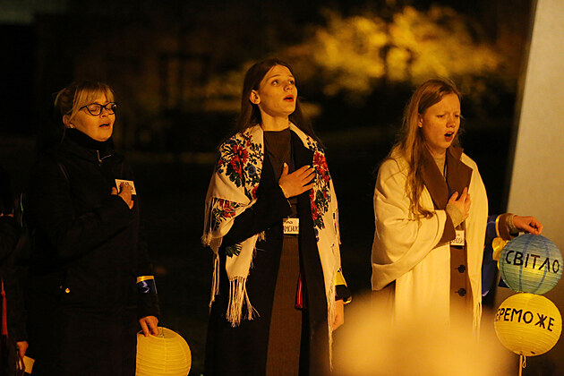 V průvodu, který v úterý večer v Jihlavě připomněl 1000 dnů od ruské agrese na Ukrajině, šly převážně ukrajinské ženy s dětmi a také několik Čechů.