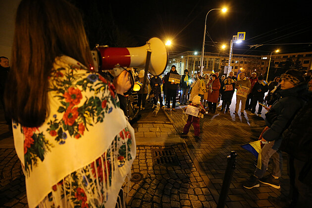 V průvodu, který v úterý večer v Jihlavě připomněl 1000 dnů od ruské agrese na Ukrajině, šly převážně ukrajinské ženy s dětmi a také několik Čechů.