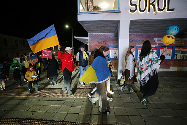 V průvodu, který v úterý večer v Jihlavě připomněl 1000 dnů od ruské agrese na Ukrajině, šly převážně ukrajinské ženy s dětmi a také několik Čechů.