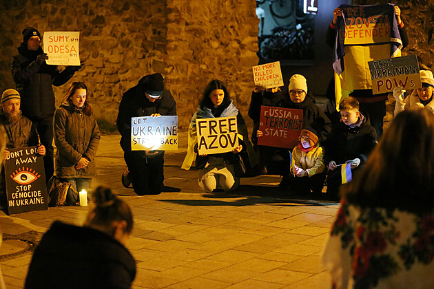 V průvodu, který v úterý večer v Jihlavě připomněl 1000 dnů od ruské agrese na Ukrajině, šly převážně ukrajinské ženy s dětmi a také několik Čechů.